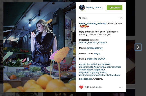 The challenge of trying out another photographic genre, I am interested in fashion, but I personal believe it’s good to try out a variety of photographic genres such as still life, portraits, events, street photography and etc, as you can learn what makes a good photograph within each photographic genre.